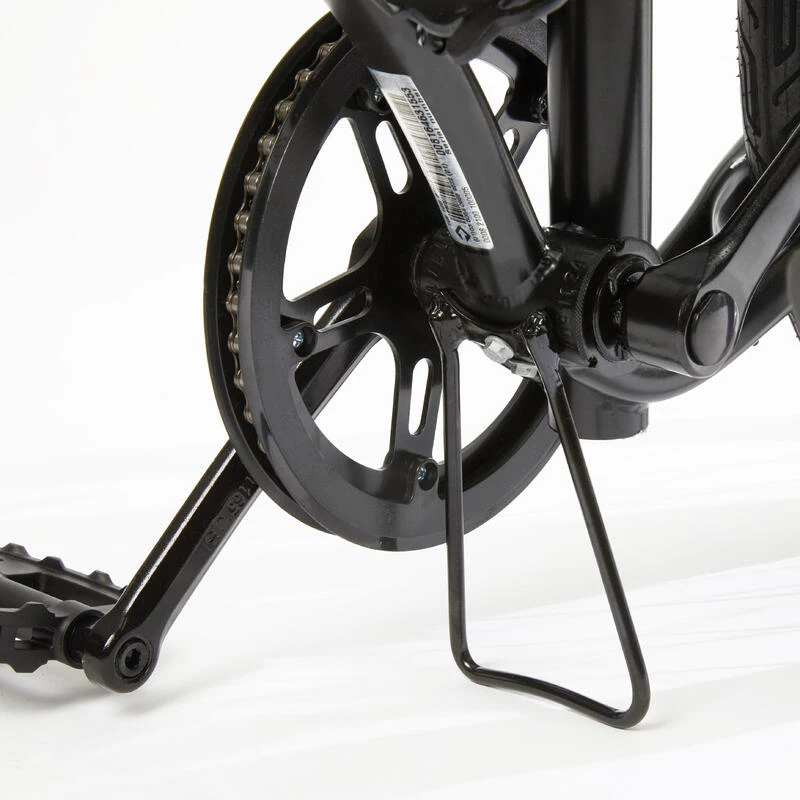 Afin d’améliorer la stabilité du vélo une fois plié, le cadre est équipé, sous sa base, d’un repose-vélo.
